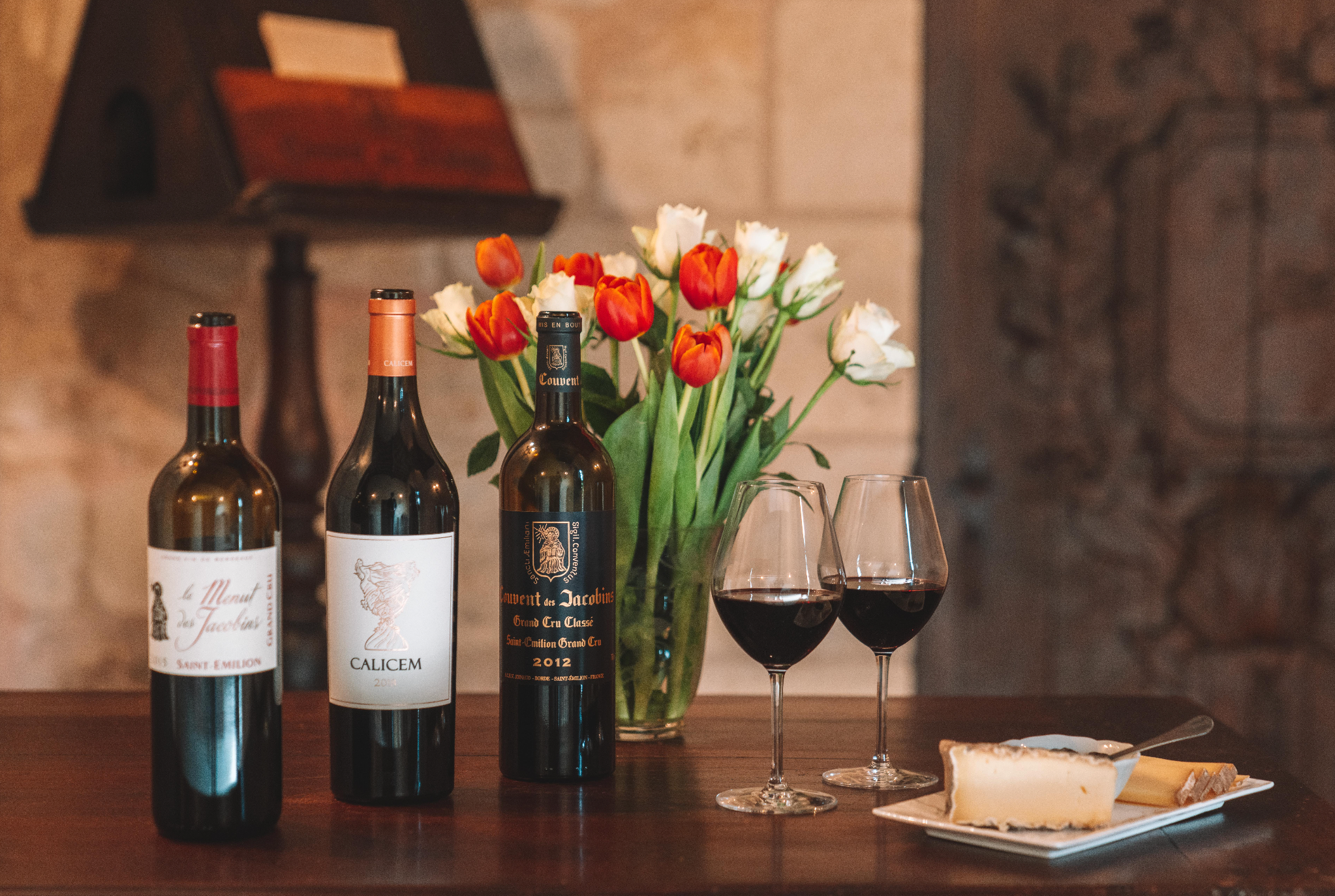 Maison Douze, boutique de Couvent des Jacobins, est la vitrine des vins et du savoir-faire de la propriété. Une sélection de plusieurs millésimes de Couvent des Jacobins (Saint-Émilion Grand Cru Classé), Menut des Jacobins (Saint-Émilion Grand Cru) et CALICEM (Saint-Émilion Grand Cru) est disponible à la dégustation.
